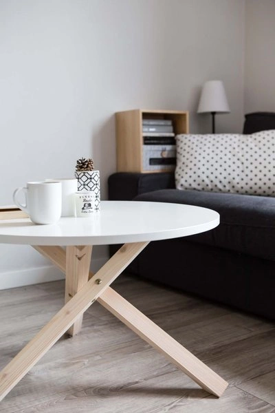Kto powiedział, że stół ma zawsze cztery nogi? Trójnożny, skandynawski stolik kawowy nie tylko przykuwa uwagę swą niecodzienną formą, lecz jest także bardzo stabilny dzięki specjalnej konstrukcji drewnianego stelaża.