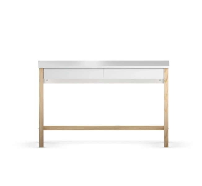 Biurko VERYSIMPL B-DES5/2 białe z drewnianym stelażem, dwie szuflady pod blatem