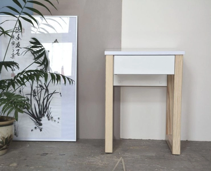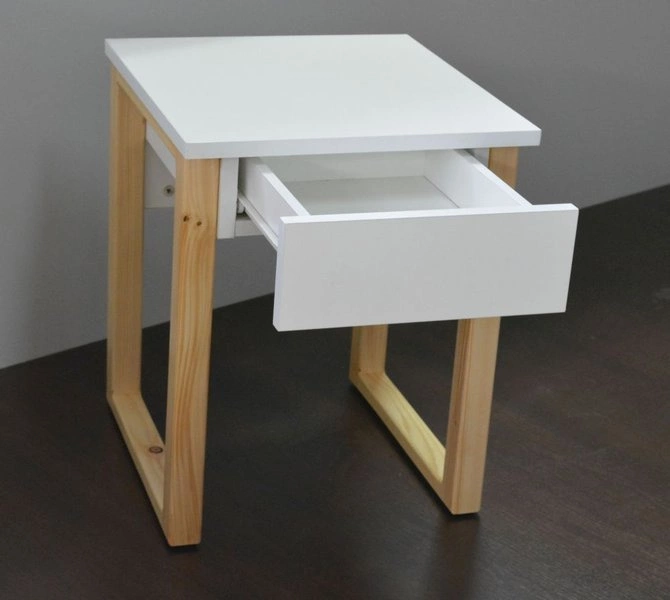 Stolik nocny skandynawski z szufladą i drewnianą podstawą [52x39x32 cm] N-DES5