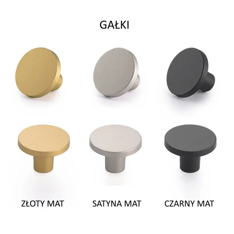 Uchwyty Krawędziowe (biały/czarny) lub gałki (złoty mat, satyna mat, czarny mat)