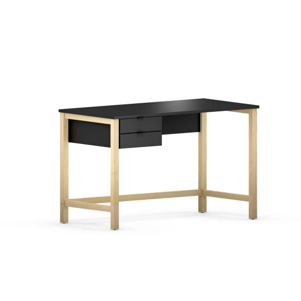 B-DES7 — biurko do domu i gabinetu z dwiema szufladami i stelażem z litego drewna