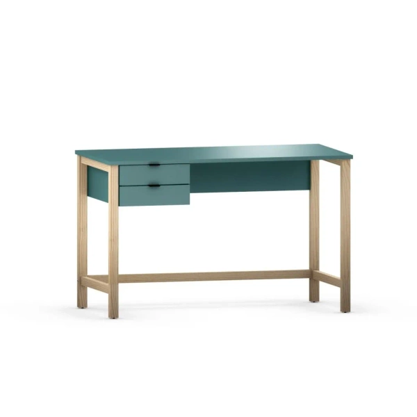 • Biurko VERYSIMPL B-DES7 z dwiema szufladami i stelażem z litego drewna. Wybierz stronę szuflad, kolor z palet STANDARD lub TRENDY oraz rodzaj uchwytów. Idealne do pokoju dziecka, gabinetu lub domowego biura.
