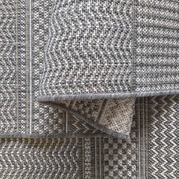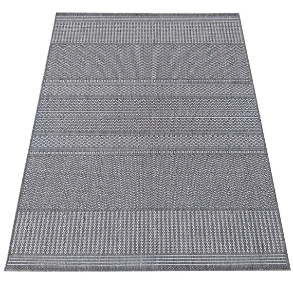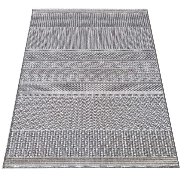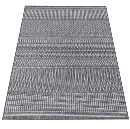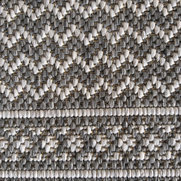 Dywan sznurkowy Zara 12 szary wyróżnia się wyraźnym, geometrycznym wzorem w formie pasów i zygzaków, które układają się w nowoczesną, ale subtelną kompozycję. Jasnoszara kolorystyka, przełamana tonami grafitowymi i kremowymi, tworzy spójną całość pasującą do aranżacji w stylu nowoczesnym, skandynawskim lub minimalistycznym. Dwustronność dywanu pozwala na użytkowanie go z obu stron, co wydłuża jego żywotność i daje większe możliwości dekoracyjne. Prosta forma i klasyczny układ wzoru doskonale komponują się z meblami ogrodowymi i balkonowymi.