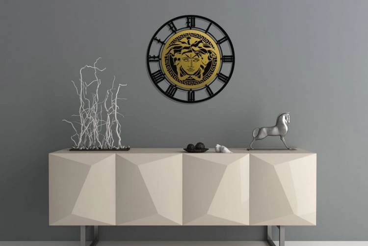Elegancki zegar ścienny z motywem MEDUZY GORGONA w kolorze czarnym z tarczą w trzech kolorach do wyboru