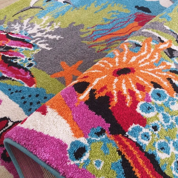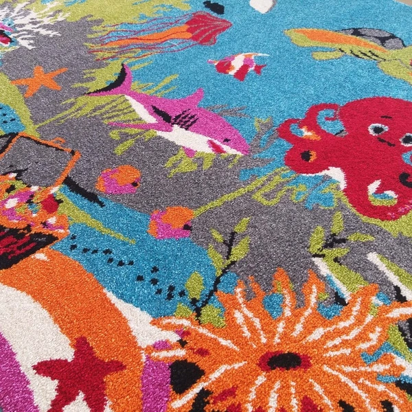To idealny dywan do pokoju dziecięcego, zarówno dla chłopców, jak i dziewczynek, którzy marzą o morskich przygodach. Soczyste barwy i starannie dobrane detale sprawiają, że dywan przyciąga wzrok i zachęca do zabawy – na siedząco, na leżąco, a nawet "na rybkę".