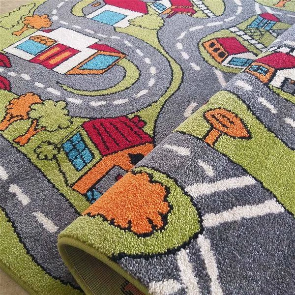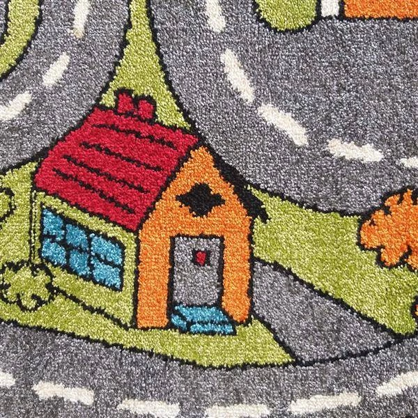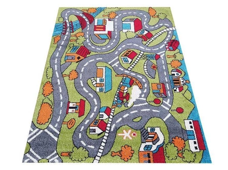 - Dywan dziecięcy Bella 108 z drogami, domkami i drzewkami to świetna przestrzeń do zabawy dla małych fanów autek. Kolorowy i bezpieczny – idealny do pokoju chłopca lub przedszkola.