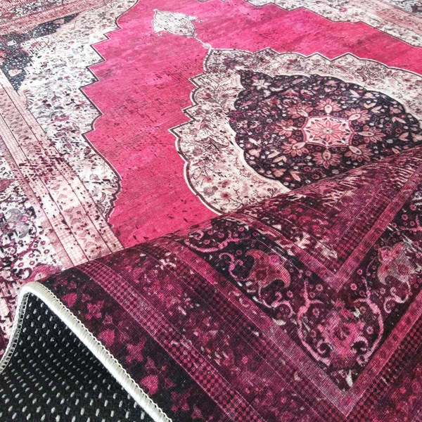 Vintage 200 różowy to wyjątkowy dywan z efektem przecierki, który łączy klasyczne ornamenty z nowoczesnym kolorem. Intensywny róż w połączeniu z przygaszoną czernią i detalami w kolorze kości słoniowej tworzy niepowtarzalny wzór inspirowany orientem. Centralny medalion otoczony bogatym obramowaniem sprawia, że dywan nabiera wytwornego charakteru. Efekt postarzenia dodaje mu oryginalności i sprawia, że idealnie wkomponuje się zarówno w klasyczne, jak i bardziej eklektyczne wnętrza.Wygoda użytkowania i praktyczność