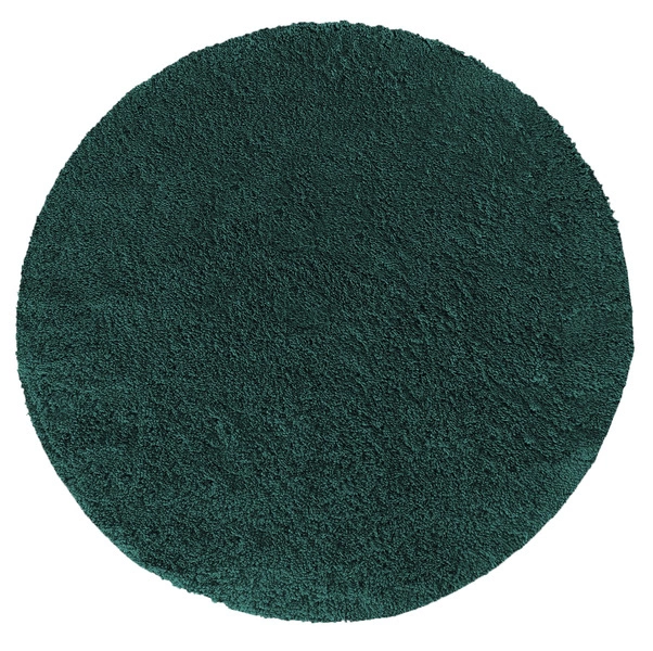 - Stylowy dywan Shaggy Kamel w odcieniu butelkowej zieleni. Okrągły, miękki, z długim runem 25 mm i antypoślizgowym spodem. Jednolity kolor, możliwość prania w pralce – idealny do eleganckich i przytulnych wnętrz.
