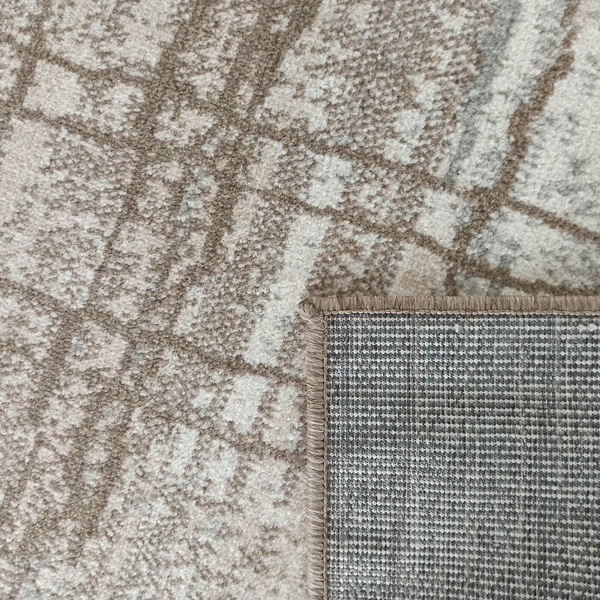 - Dywan Roxanne 05 w odcieniach beżu i szarości z subtelnym wzorem kraty. Wykonany z przędzy 100% polipropylen BCF. Runo o wysokości 9 mm, waga 1400 g/m². Idealny do salonu, sypialni lub pokoju młodzieżowego.