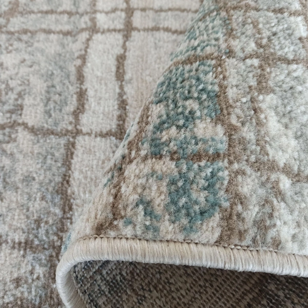 - Dywan Roxanne 06 z motywem przecieranej kraty w beżu i niebieskich akcentach. Runo 9 mm, waga 1400 g/m², 100% polipropylen BCF. Stylowy wybór do nowoczesnego salonu, sypialni lub pokoju młodzieżowego.