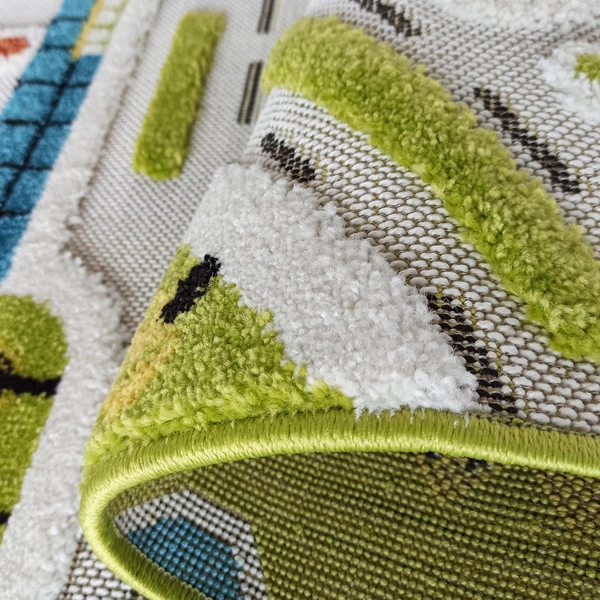 Color Kids 01 to wyjątkowy dywan edukacyjny z wyrazistym motywem miasta i siecią uliczek. Na powierzchni dywanu znajdziemy place, ronda, stację paliw, sklepy, marinę i lotnisko, co stwarza nieograniczone możliwości do kreatywnej zabawy samochodzikami i figurkami. Kontrastowe kolory i szczegółowe wzory pobudzają wyobraźnię oraz wspierają rozwój wzroku i inteligencji przestrzennej dziecka.