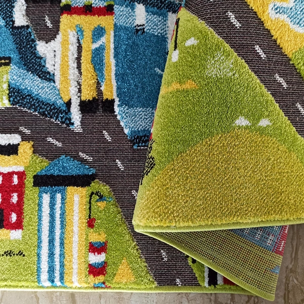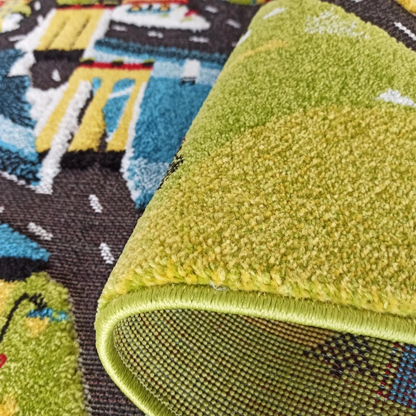 - Kolorowy, sensoryczny dywan dziecięcy Color Kids 03 z motywem miasta, ulic i rzeki. Idealny do zabawy i nauki przez doświadczenie – wspiera rozwój dziecka i stymuluje zmysły.