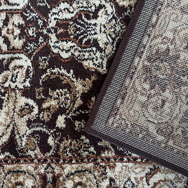 Dywan Exclusive N 02 brązowy to wyjątkowy model w tradycyjnym stylu, który doskonale wpisze się w eleganckie, klasyczne wnętrza. Ozdobny ornament z motywem roślinnym został osadzony na głębokim, czekoladowym tle, nadając mu wyjątkowego charakteru. Bogaty wzór przyciąga wzrok i doskonale komponuje się z drewnianymi meblami oraz stylowymi dodatkami. To klasyczny dywan, który podkreśli wyrafinowany klimat salonu, jadalni lub sypialni. Brązowy kolor wprowadza przytulność i harmonię, a dekoracyjna rama dodaje całości elegancji.Trwałość i komfort użytkowania