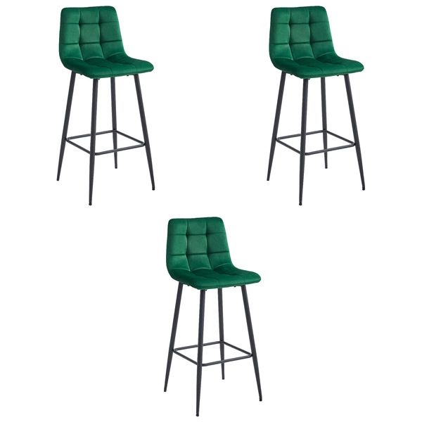 Krzesła barowe ARCETO z oparciem - Zielone (butelkowa zieleń), tapicerowane hokery (x3)