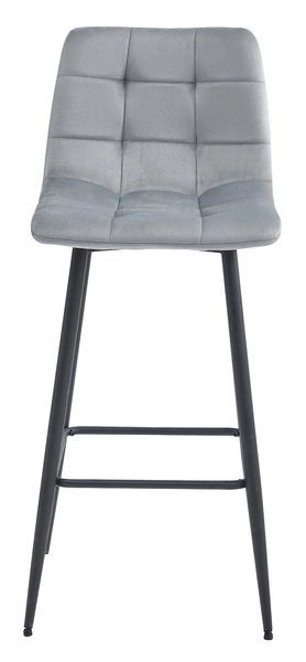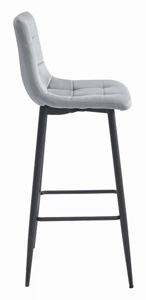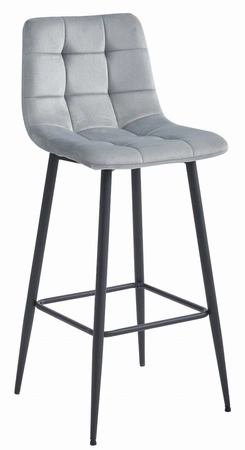 Szary hoker ARCETO - Tapicerowane, srebrne krzesło barowe z oparciem