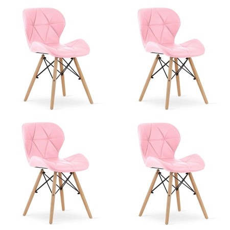 Komplet różowych krzeseł do jadalni LAGO - Tapicerowane krzesło z eko skóry x4