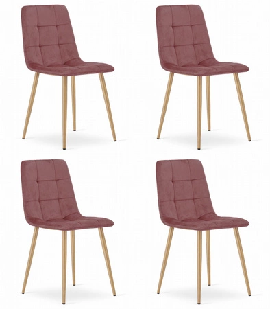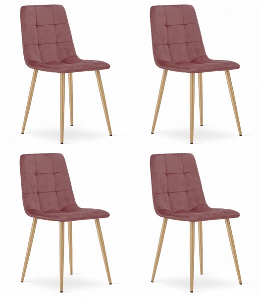 Welurowe różowe krzesła do kuchni KARA (4szt) - Tapicerowane krzesła z aksamitu