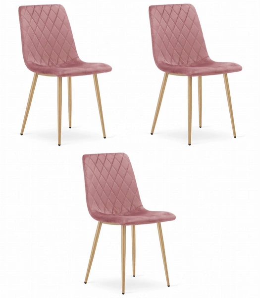 Różowe krzesła TURIN na jasnych nogach - Tapicerowane, pikowane, welurowe krzesła x3