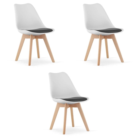 Skandynawskie białe krzesła z czarną poduszką MARK (3szt) - Krzesła z tworzywa