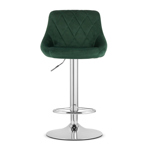 Zielony hoker barowy KAST - Welurowe krzesło barowe z oparciem i podstawą chrom