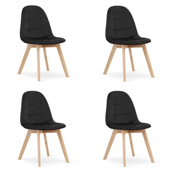 Tapicerowane krzesło do jadalni BORA (4szt) - Czarne krzesła welurowe z aksamitu