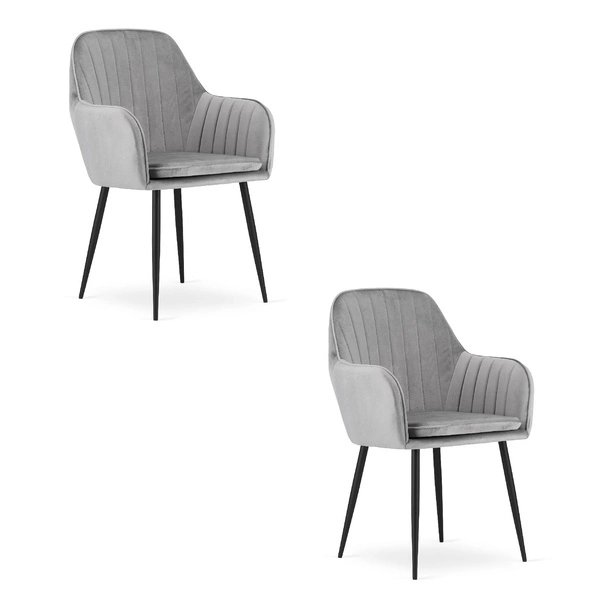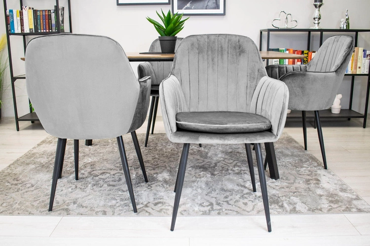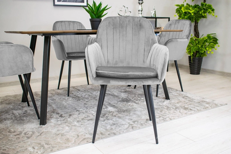 Szare tapicerowane krzesła z podłokietnikami do jadalni LUGO - Fotele do jadalni (2 sztuki)