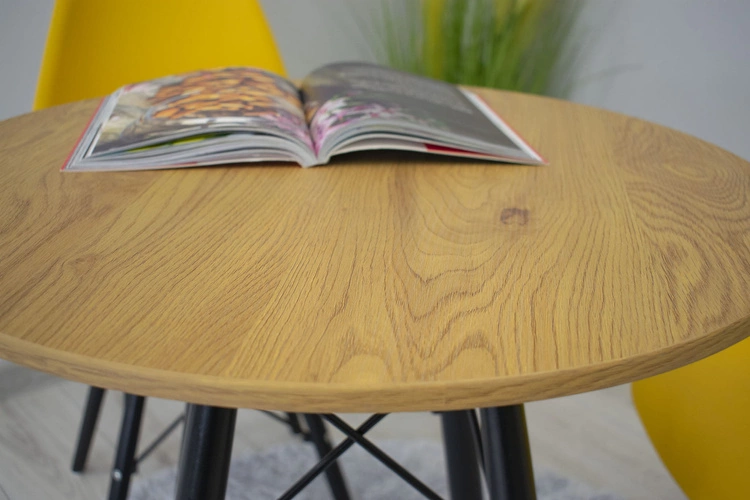 Mały okrągły stół TODI 60cm - Skandynawski stół z dębowym blatem i czarnymi nogami