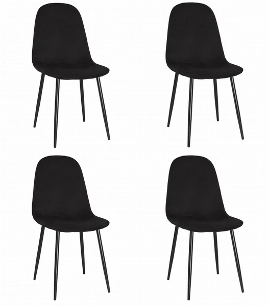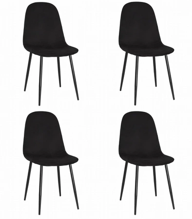 Komplet 4 prostych tapicerowanych krzeseł kuchennych COMO - Czarne krzesła welurowe