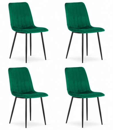 Nowoczesne zielone krzesła LAVA (4 sztuki) - Welurowe krzesła butelkowa zieleń
