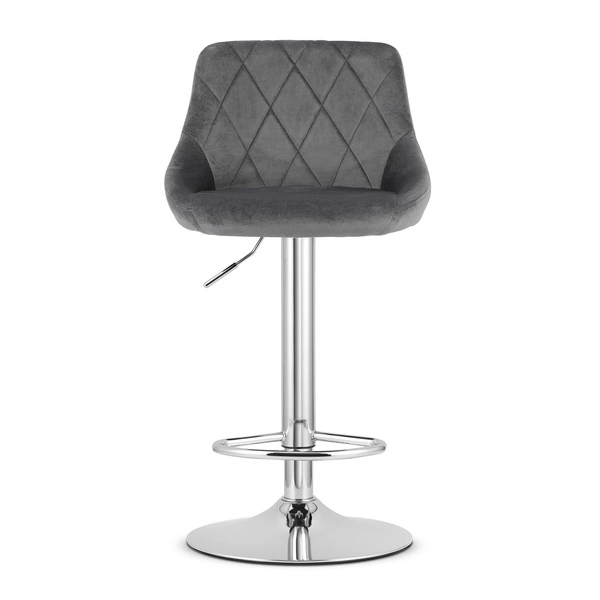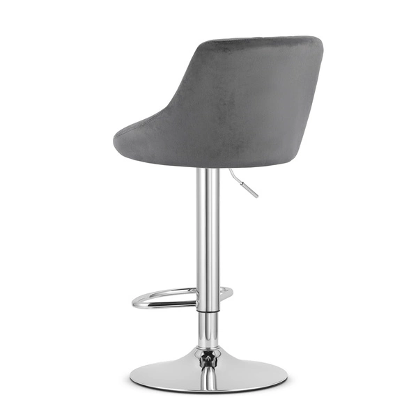 Szare krzesło barowe z oparciem KAST - Welurowy hoker z podstawą chrom