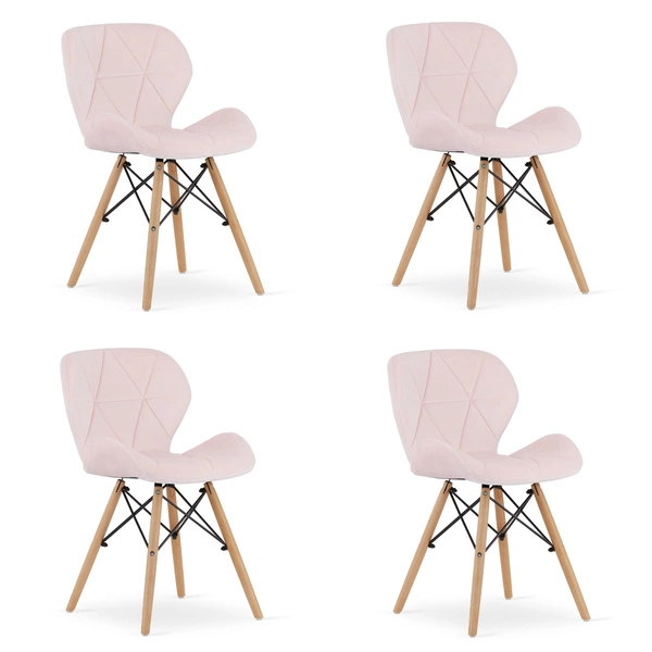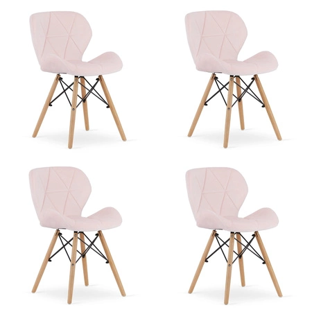 Komplet tapicerowanych krzeseł z eko skóry LAGO - Różowe krzesła do kuchni x4