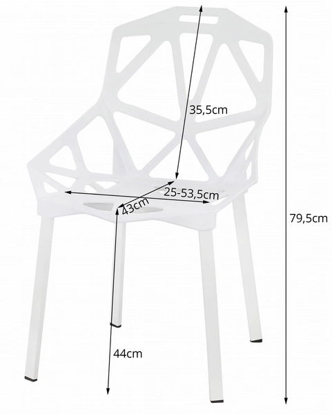 • krzesło o bardzo geometrycznych kształtach wpasuje się w wnętrze w niemal każdym stylu