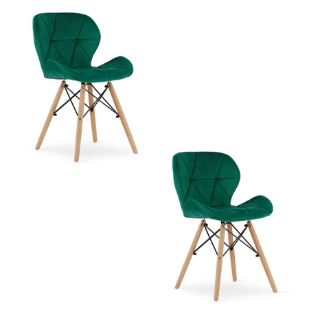 Welurowe zielone krzesła do kuchni LAGO (2 szt) - Krzesła z aksamitu butelkowa zieleń