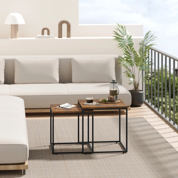 Kwadratowe stoliki kawowe (zestaw 2 sztuk) - Loftowe stoliki do salonu