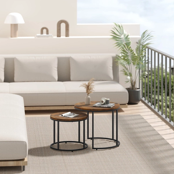 Okrągły stolik kawowy 2 sztuki - Zestaw 2 industrialnych stolików do salonu