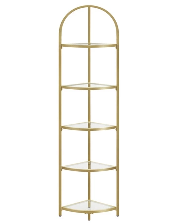 Złoty narożny regał do salonu - Szklana narożna półka Glamour - VASAGLE LGT810A01