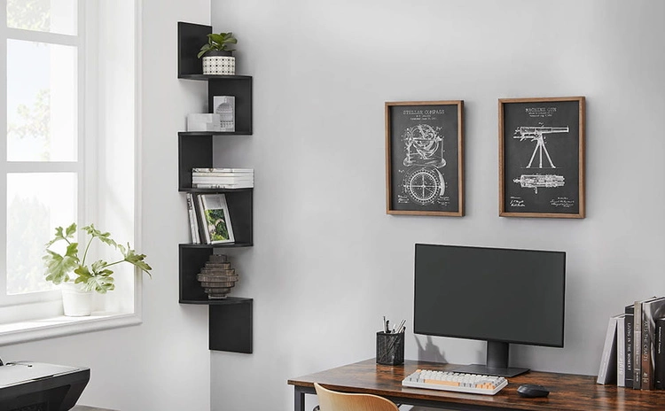 Narożna półka na książki - Narożny regał - Czarna półka ścienna - VASAGLE LBC072B01