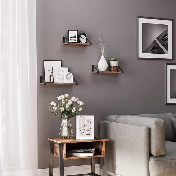 Półki ścienne do salonu - Wiszące półki na ścianę - Zestaw półek (Brąz Vintage) VASAGLE LWS33BX