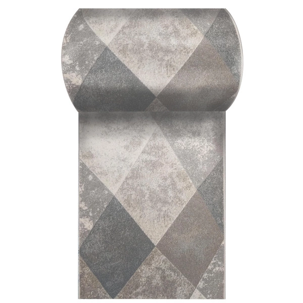 • Nowoczesny chodnik Vista 05 w geometryczny wzór rombów. Beżowo-szary, mięsisty, idealny do przedpokoju i korytarza. Docinamy na wymiar – obszycie w cenie!