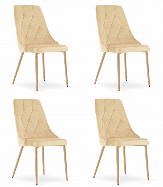 Tapicerowane krzesła IMOLA - Pokryte aksamitem, beżowe krzesła do jadalni (zestaw 4)