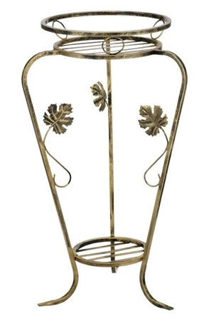 • Piękny metalowy kwietnik, doskonała, praktyczna ozdoba każdego wnętrza. Wyrób szczególnie sprawdzi się w stylowych, klasycznych salonach. Kwietnik ma dwa miejsca na doniczki - jedno znajduje się u podstawy, drugie na szczycie metalowego stelażu.