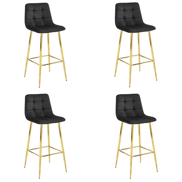 Tapicerowane krzesła barowe ARCETO - Czarne hokery z oparciem w stylu glamour (komplet 4)