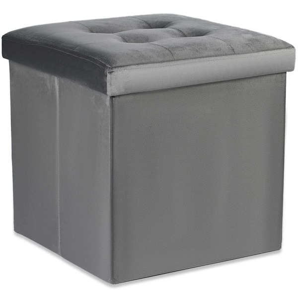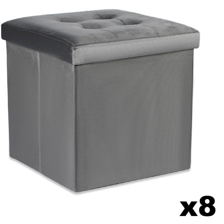 Pufa składana L z guzikami - 38x38x38cm aksamit szara x 8