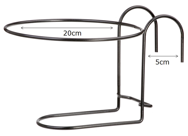 - Podstawka balkonowa - metalowy kosz do okrągłej doniczki o średnicy do 20 cm. Kwietnik wykonany z metalu malowanego proszkowo. Wyprofilowany uchwyt pasuje do większości balustrad.