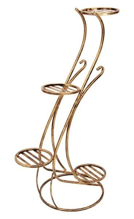 Kwietnik metalowy, stojak do kwiatów, z podstawkami na cztery doniczki WDZIĘK, o wdzięcznej falistej formie w stylistyce retro