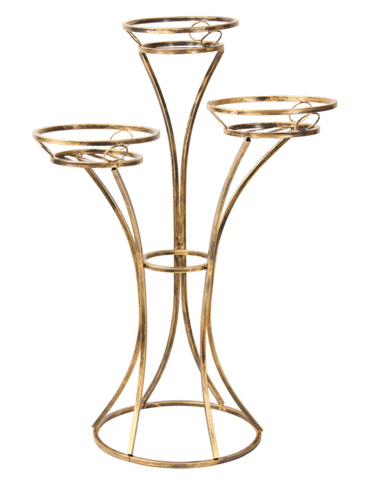 Metalowy kwietnik - stojak na kwiaty TRÓJNIAK w stylu retro z trzema wspaniale ułożonymi podstawkami na doniczki