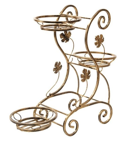 W formie przypomina fotelik lub wózeczek z miejscami na doniczki na różnych wysokościach, co pozwala na umieszczenie roślin kaskadowo, aby je lepiej wyeksponować. Dobre dla niego będzie miejsce w niemal każdym zakątku domu, ale także na tarasie, balkonie czy loggii, nie mówiąc już o ogrodowej altanie. Styl retro charakteryzujący się bogatymi zdobieniami wzorowanymi na roślinach zadowoli entuzjastów wnętrz nie pozbawionych kolorytu i zmysłowości. Ten fantazyjny stojak zwraca na siebie uwagę, nie jest obojętny i z pewnością nie będzie sprzętem zapomnianym.