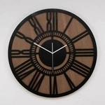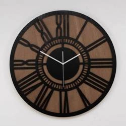 Zegar ścienny LOFTOWY wykonany na podwójnej sklejce brzozowej, kolor czarny, bejca orzech, ORNAMENTI
